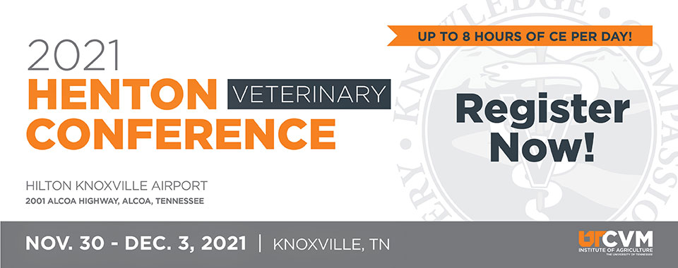 The 2025 Henton Veterinary Conference* will be held Tuesday, December 9 – Thursday, December 11 in the UTIA Agriculture and Natural Resources Building located across from the veterinary college on Joe Johnson Drive. Up to twenty hours of continuing education credits is available.