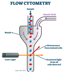 Flow cytometry is a powerful diagnostic and research technique used to analyze the physical and chemical characteristics of cells. It utilizes fluorescently labeled antibodies that bind to specific cellular markers. When exposed to a laser, these markers emit fluorescence, allowing for rapid, multiparametric analysis of thousands of cells per second. Flow cytometry provides valuable information for diagnosing and monitoring diseases such as hematologic malignancies, immunodeficiencies, and infectious diseases. This technique helps clinicians assess cell populations, identify abnormal cells, and monitor treatment responses with high precision and accuracy.